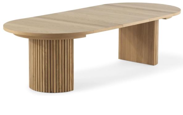 This wood table is pretty easy to expand: just pull on the sides to extend the table, place panels on the tracks, and slide panels into place by aligning pins and holes. There is a latch that lets you secure the panels. Even with 0 panels, this table can accommodate 4 people.