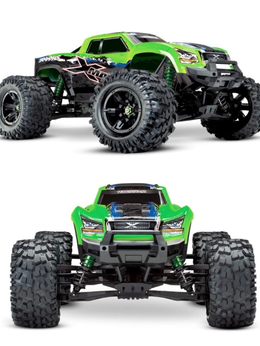 This is the Traxxas 77086-4 X-Maxx: a powerful monster truck with 30+ volts of extreme 8S power that can reach speeds over 50mph. It is driven by a Velineon 1200XL brushless motor with an aluminum heat sink. This RC monster truck has a modular composite chassis and rigid structure.