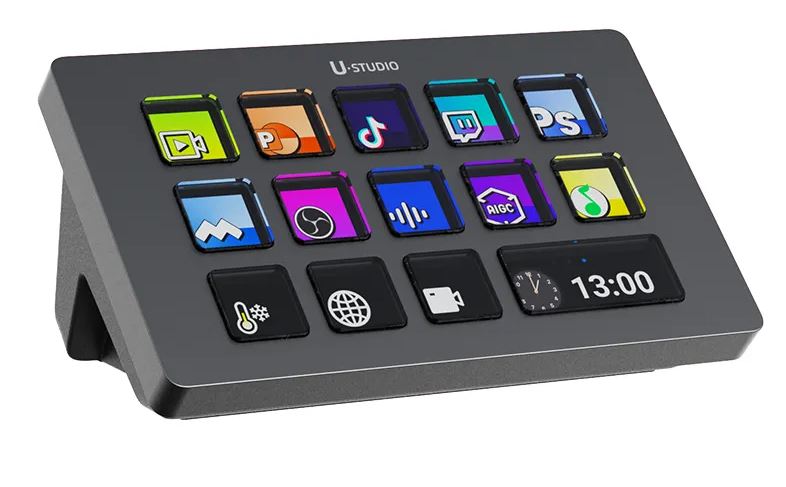 Every serious streamer relies on a controller to activate scenes, sound effects, and apps. Take the ULANZI D200 for example: it has 13 LED keys that support macro functions and an info window. You can create macros that combine together to get tasks done that require multiple clicks. The ULANZI D200 relies on the U-Studio app store, so you can customize it to your liking.