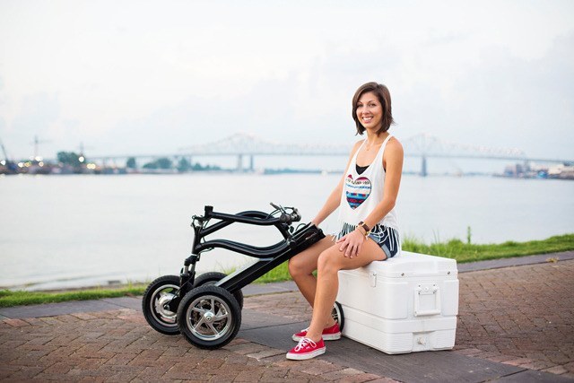 Meet the UpCart Lift: a folding hand truck that lets you move loads up to 200 lbs up and down the stairs and over uneven terrain. It has a 4-position handle, large grips, and dual layer rubber tires.