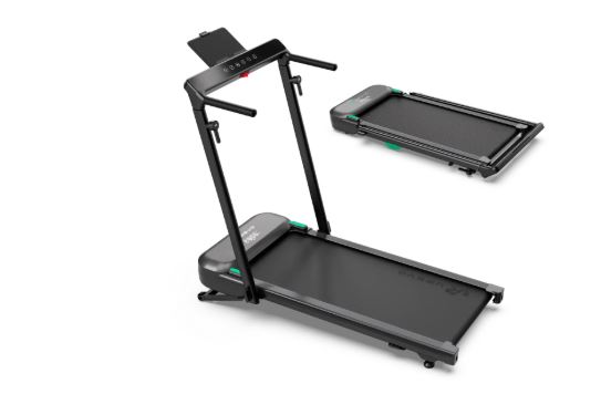 UREVO is behind many compact treadmills. The FoldiMix Walking Pad is another one of their app connected treadmills that can give you a challenging exercise indoors. It has a speed range of up to 7.6mph. It is powered by a 3HP motor and handles up to 400lbs of load. It has a 12-point shock absorption system to go easy on your joints or body.