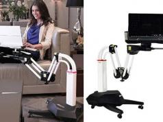 Here is a compact laptop desk that lets you sit or stand to get work done. The VARIDESK Laptop 22 Desk has a polycarbonate construction. It folds down to 3/4-inch flat, so you can easily take it with you anywhere. The Laptop 22 also comes with a convenient carry handle.