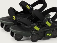 These flexible shoes will be available in 5 styles (jeans, aqua, black, violet, and pearls). They stay on thanks to ergonomic bands around your ankle. Like what you see? Japan Trend Shop has these for $275 + s/h.