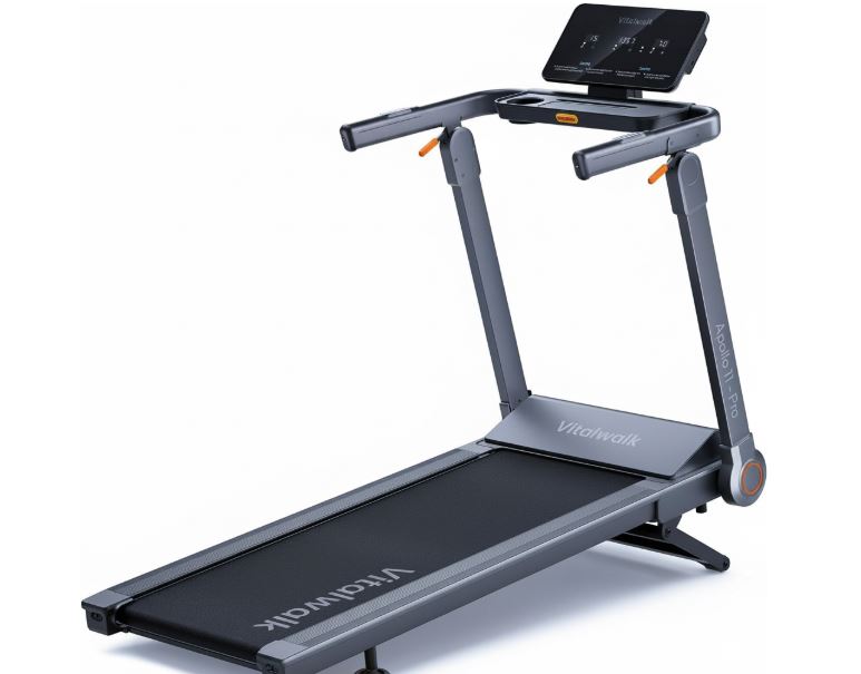 Here is another foldable treadmill with a generous running belt and plenty of power to give you a fun workout indoors. The VITALWALK Foldable Auto Incline Treadmill is powered by a 3.5HP peak brushless motor. It has a wide belt and top speed of 10mph. It can handle users up to 350lbs. This model has 15% auto incline capability, so you can burn tons calories in less time. There are also 15 HIIT programs for you to choose from.
