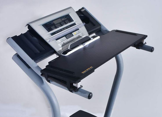 Many of us enjoy getting a workout on our treadmill. Thanks to the Walk with Me Pro-XT Plus Treadmill Desk, you can get some work done while burning calories. This adjustable unit can fit treadmills from 26″ to 32″ wide. It has elastic straps to fit around rectangular or rounded treadmill handles.
