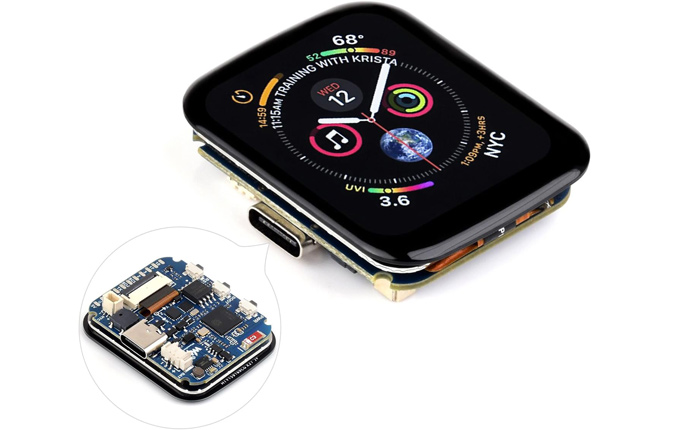This board also has a QMI8658 6-axis IMU with a 3-axis accelerometer and gyroscope. It has a USB-C port and programmable button. With 4 × GPIO, I2C, and UART interface, you will be able to connect more components. You can find PWM, boot, and RST reset buttons on the board. This is a great kit for building your own smartwatch and other gadgets.