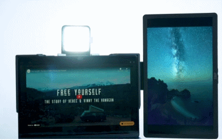 This setup comes with integrated USB cables that you can connect to your laptop to get started. The monitor can be used in horizontal and vertical mode. The phone mount can deliver up to 10W fast charging. The light is adjustable from 2500k to 6500k color temperature.