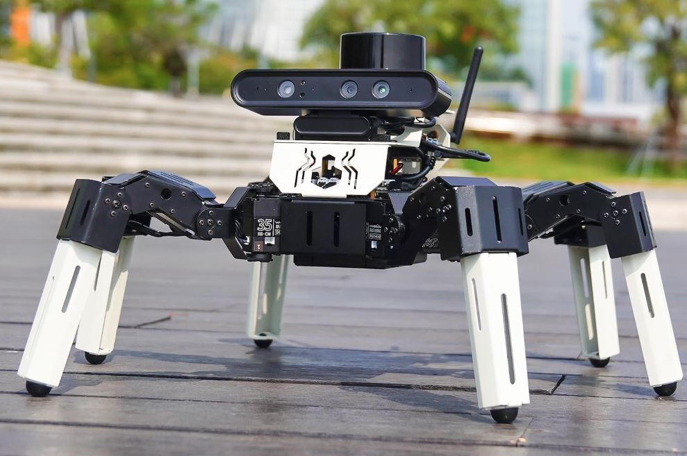 This is the Yahboom Muto RS: a programmable hexapod robot for Jetson Nano B01 that can take your coding to the next level. It has 3 motion joint points on each leg with a total of 18 degrees of freedom. You can control this robot with your smartphone or a wireless control. The Muto RS supports Python programming and ROS.