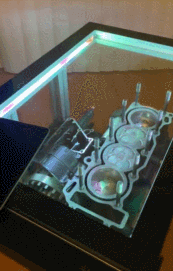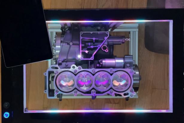 Here is another coffee table that turns heads. The Yamaha R6 Engine Coffee Table rotates when you push the start button. It also has a sound reactive LED system. It has lockable casters that you can use to easily move it around. This engine table uses a Milwaukee M12 battery.