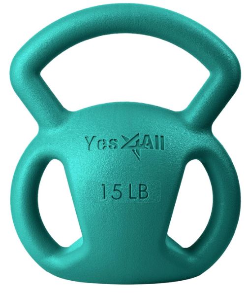 Here is another exercise tool made with female athletes in mind. The Yes4All 3-Handle Kettlebell is available in 10 and 15lb versions. It has an extra wide non-slip handle. It has a flat bottom for easy storage. You can use these weights for Romanian deadlifts, Russian twists, tricep extensions, and other popular moves.