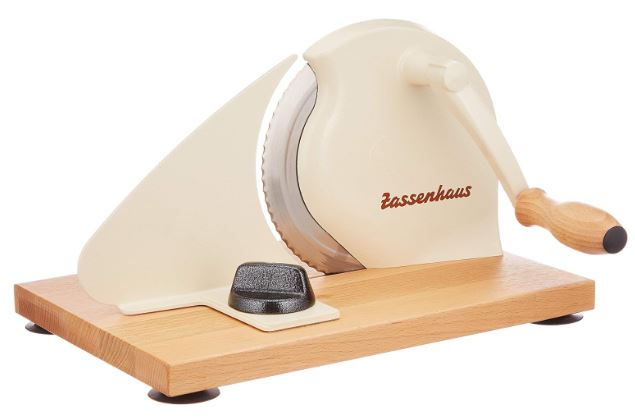 The Zassenhaus Bread Slicer has a wooden base and non-slip suction cups. You get a knob to adjust the thickness of your slice. Simply turn the handle, and the rest is easy. These manual bread slicers give more control over thickness and are cheaper to run in the long run. They also last longer.